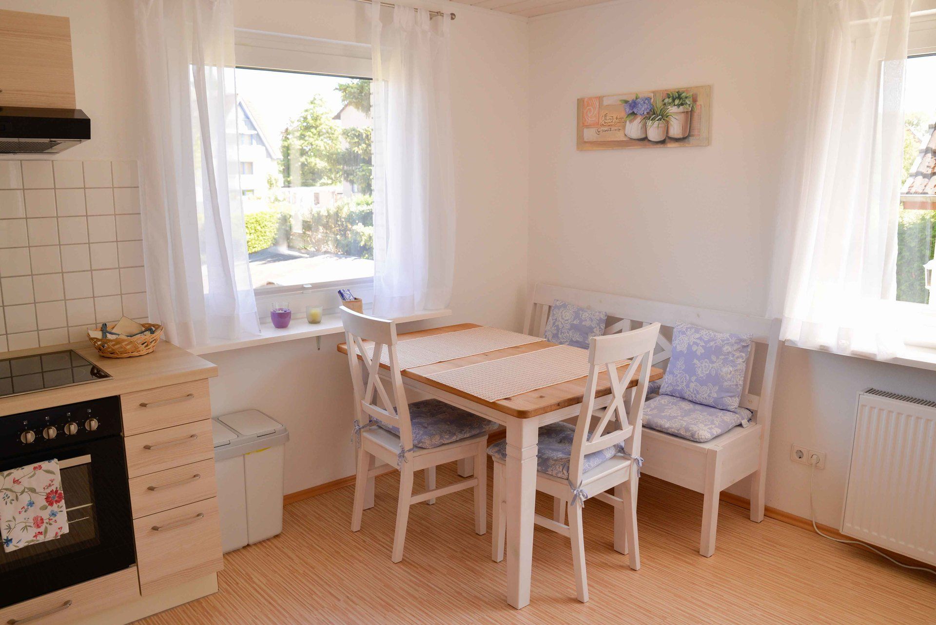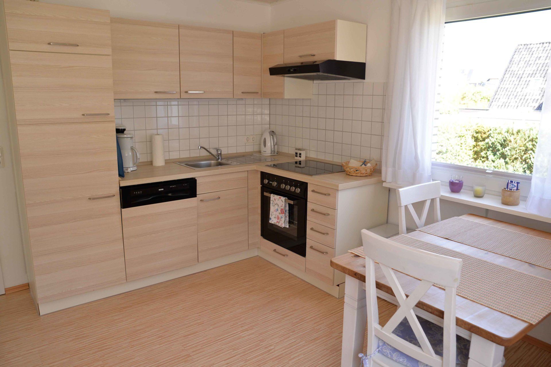 Die Küche, mit Geschirrspüler und Gefrierschrank, ist reichhaltig ausgestattet, und an dem Esstisch finden auch 3 Personen ausreichend Platz.